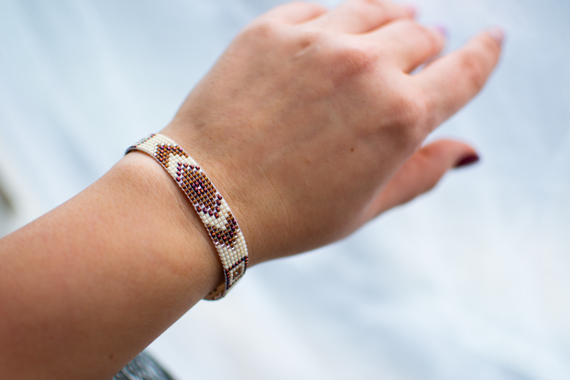 Bratara reglabila, marime standard, din margele japoneze de nisip.